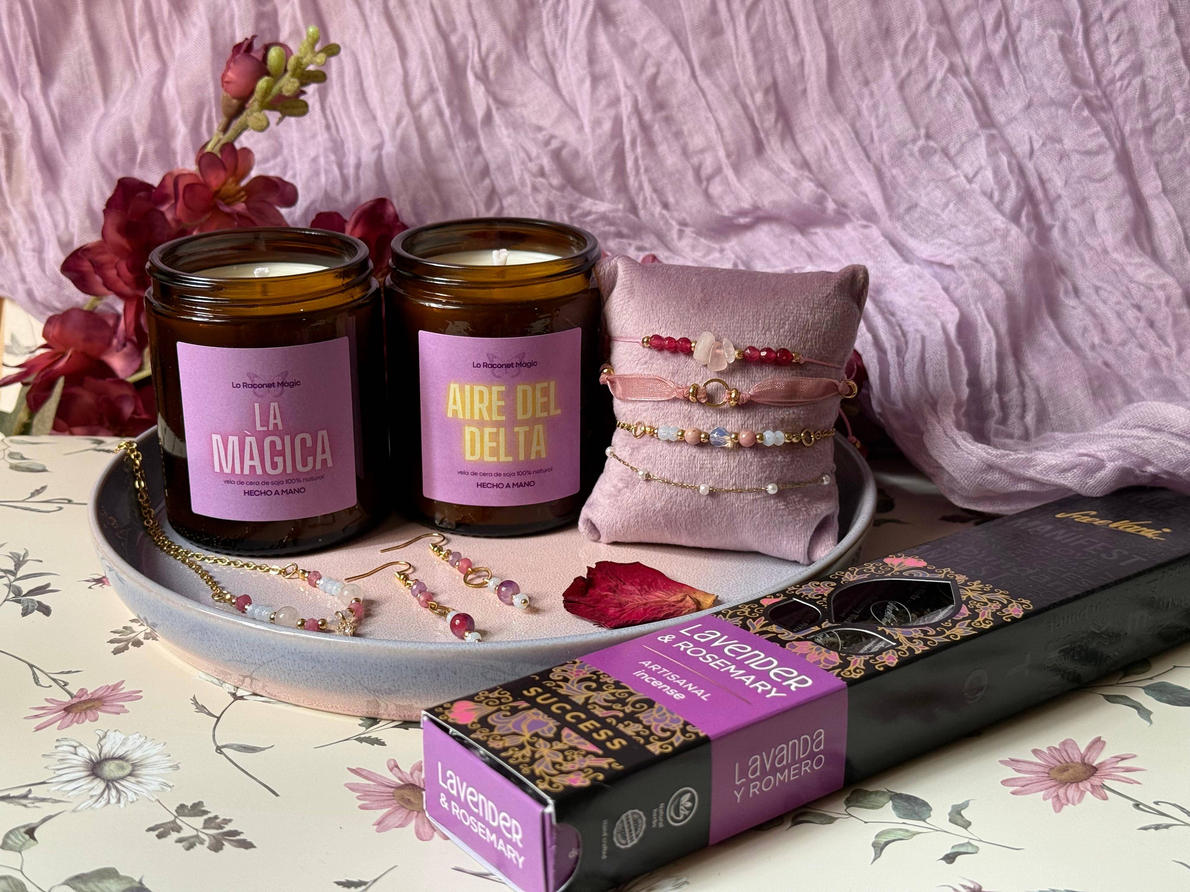 Descubre nuestras cajas mágicas llenas de sorpresas artesanales. Cada La Màgica Box está cuidadosamente preparada con velas de soja, inciensos naturales y joyería seleccionada para crear momentos especiales. El regalo perfecto para quienes amas o para ti. Magia envuelta, lista para regalar.