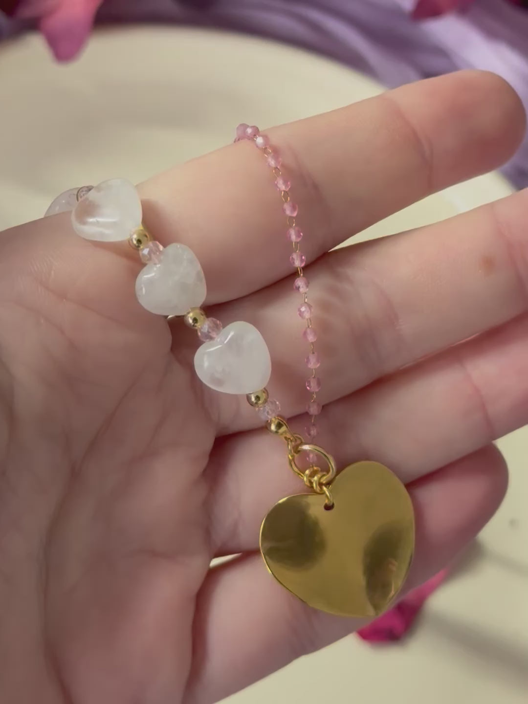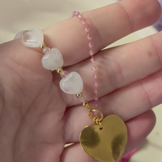 🌈 Perfecto para expresar tu personalidad única y añadir un toque de color a tu día. El cuarzo blanco te ayuda a conectar con tu poder interior mientras la cadena rosa y fucsia refleja tu lado más alegre y atrevido.