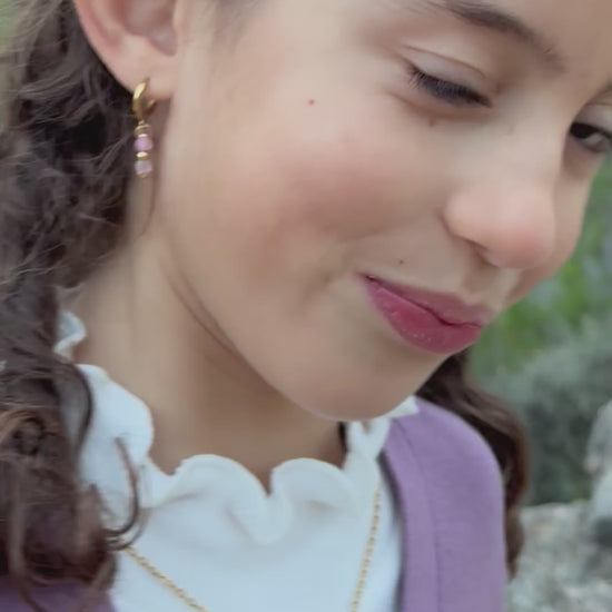 El collar Enyor es una pieza mágica de la colección Entre Núvols, diseñado especialmente para los más pequeños. Con su encantadora forma de corazón y elaborado con una combinación única de amatista natural, cuarzo rosa, ágata y ópalo, este collar artesanal reúne las propiedades de cuatro minerales especiales en una sola joya.
