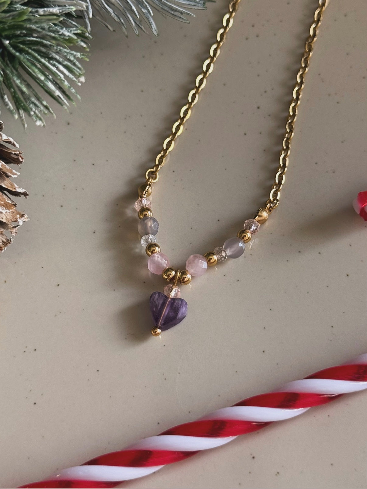 - Collar Enyor con forma de corazón (amatista, cuarzo rosa, ágata y ópalo)