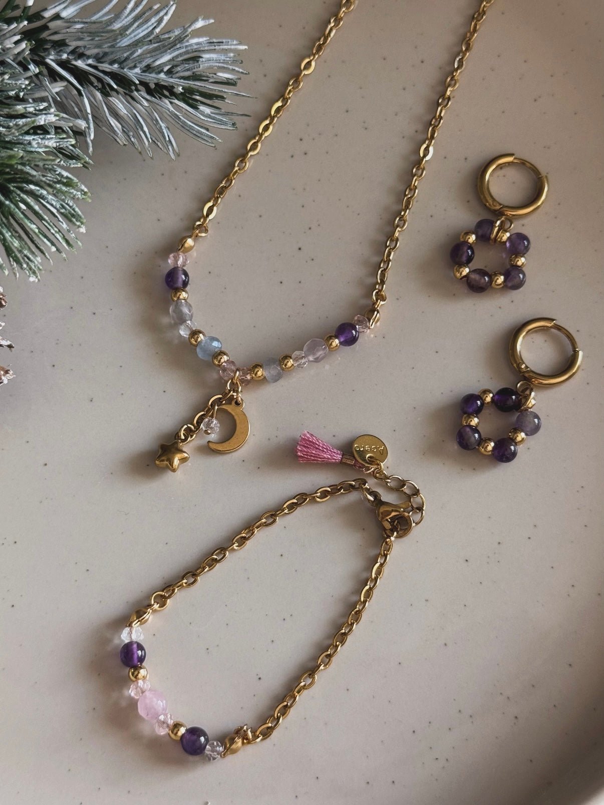 - Collar Guia con luna y estrella dorada (amatista y ágata)