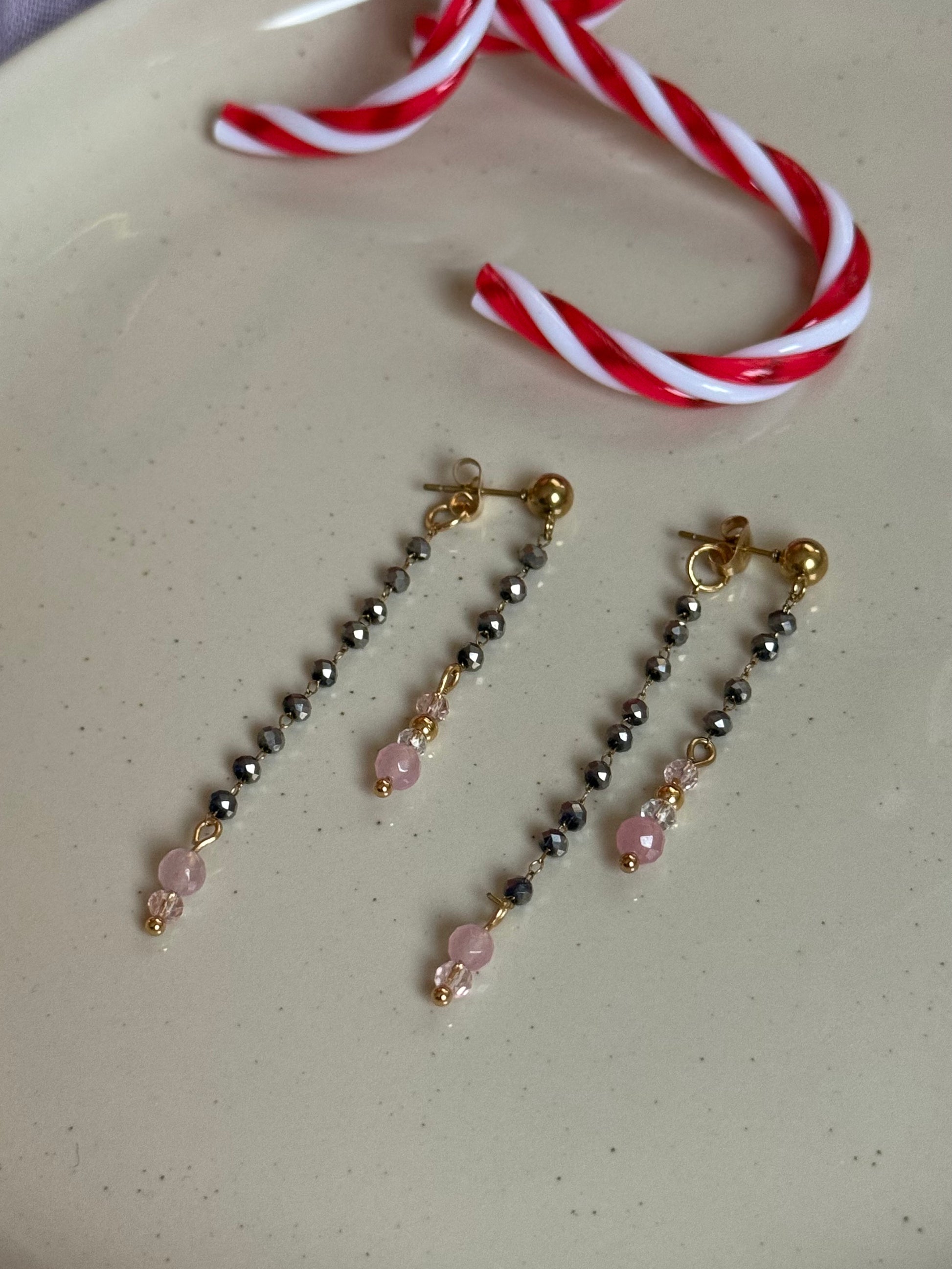 Pendientes artesanales elaborados con cuarzo rosa natural que capturan la esencia del amor eterno. Perfectos para llevar la energía del corazón cerca de ti.