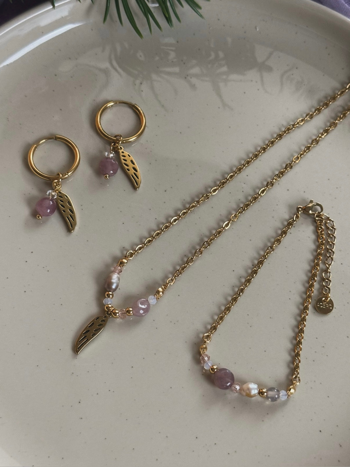 Cada piedra natural es diferente, lo que hace que cada conjunto sea una pieza única con sus propias tonalidades y características naturales. Como las nubes en el cielo y tu ángel guardián, no hay dos iguales. Cada conjunto es una protección angelical única para ti.