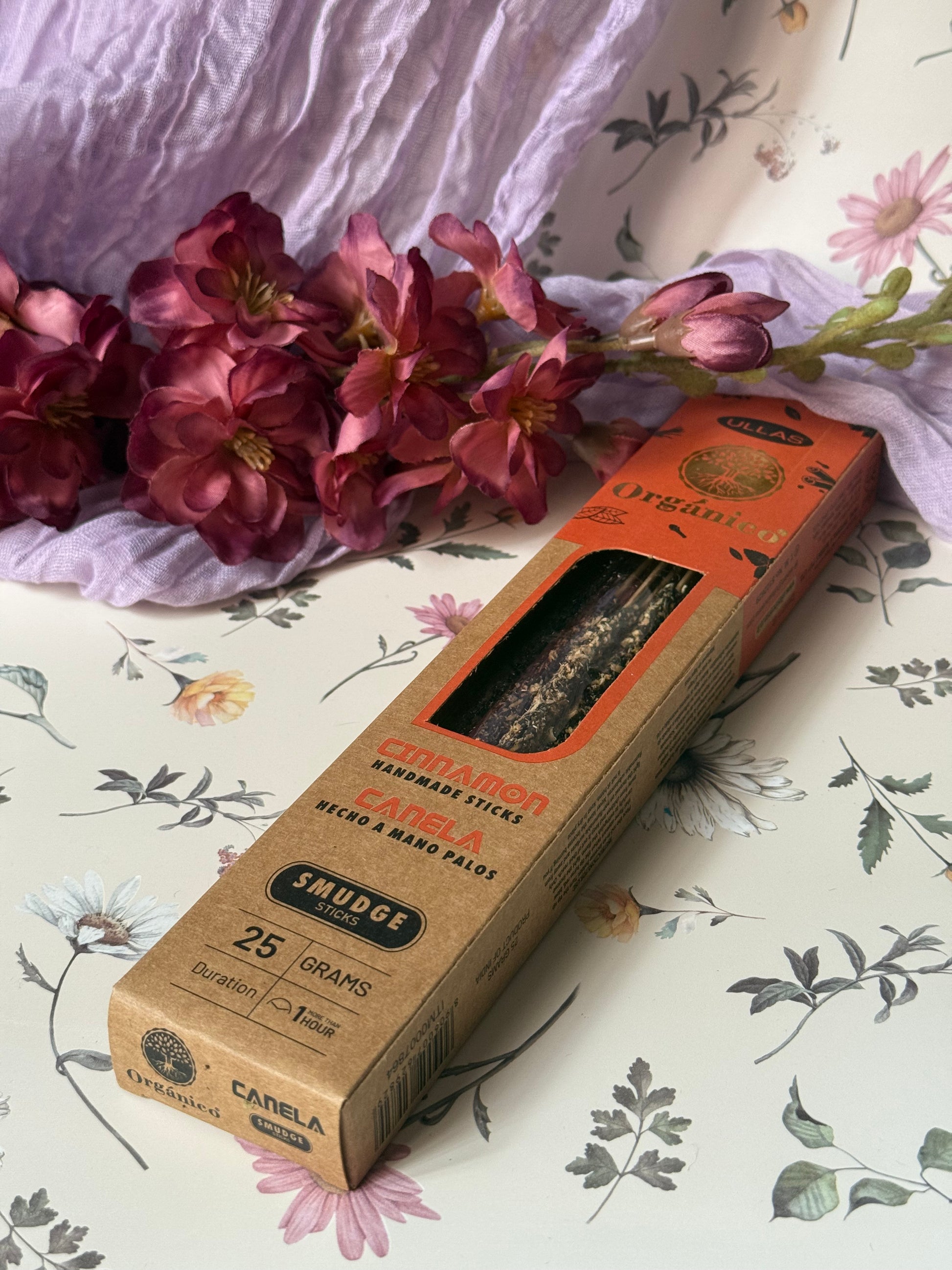 Varillas de incienso natural hechas a mano, enriquecidas con aceites esenciales naturales de canela.