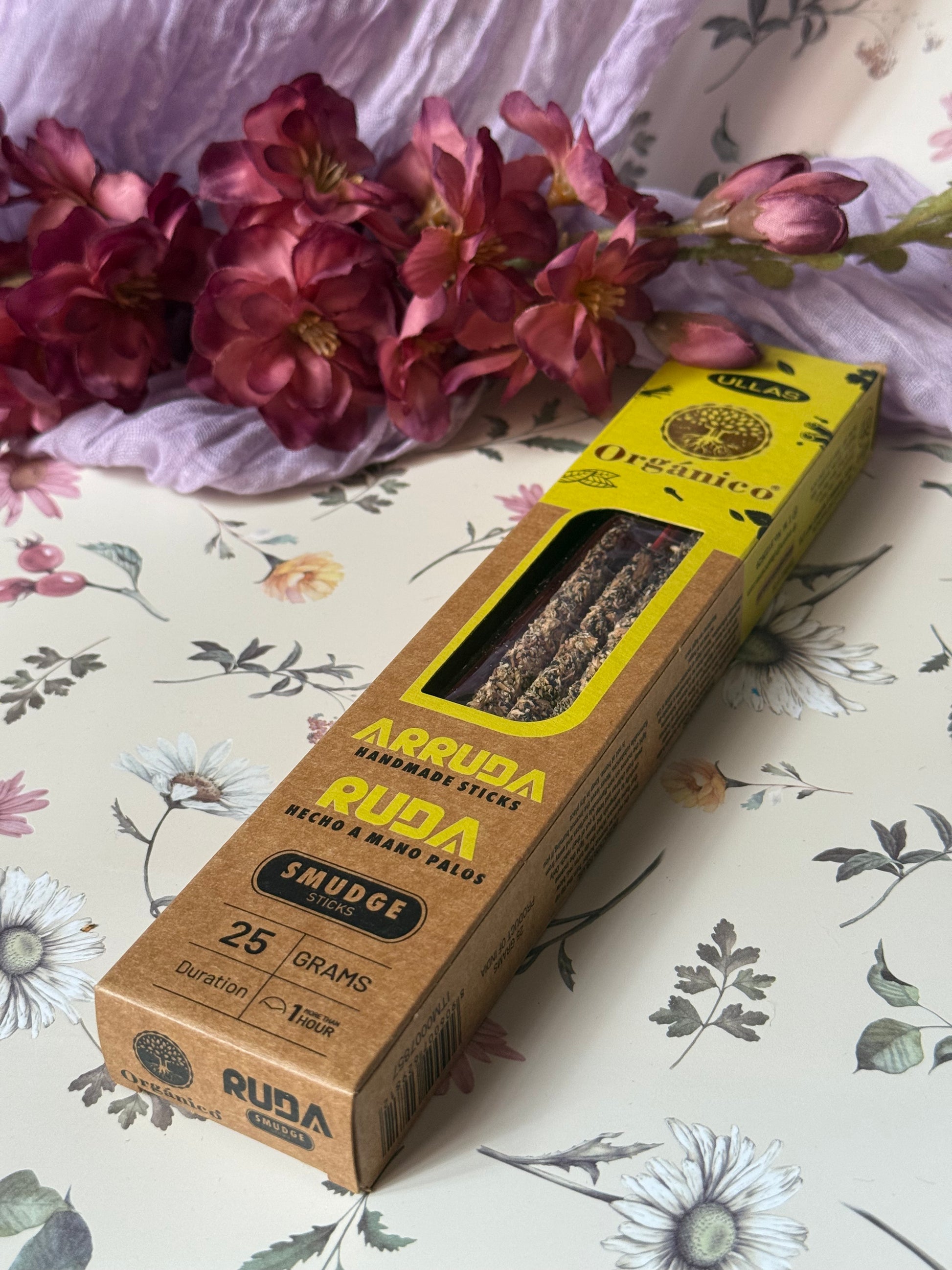 Varillas de incienso natural hechas a mano, enriquecidas con aceites esenciales naturales de ruda.