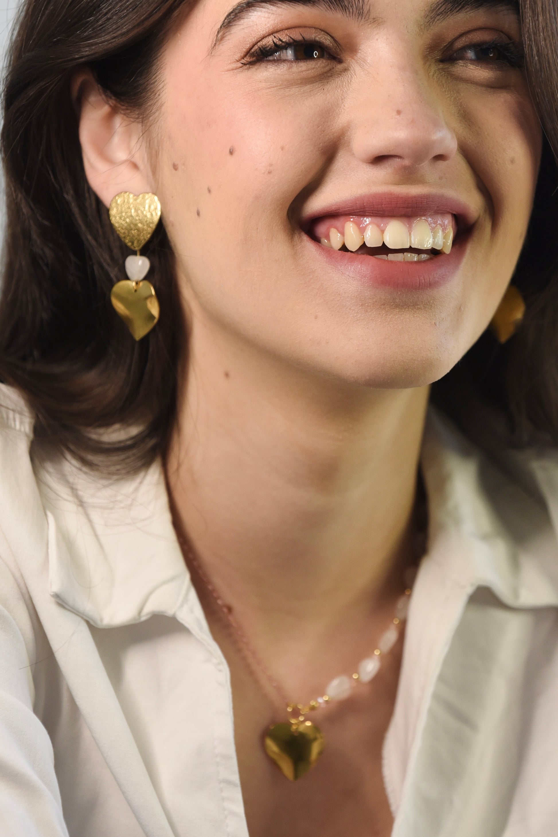 💎 Cada pendiente está adornado con auténtico cuarzo blanco, un mineral que aporta luminosidad y sofisticación a tu look.