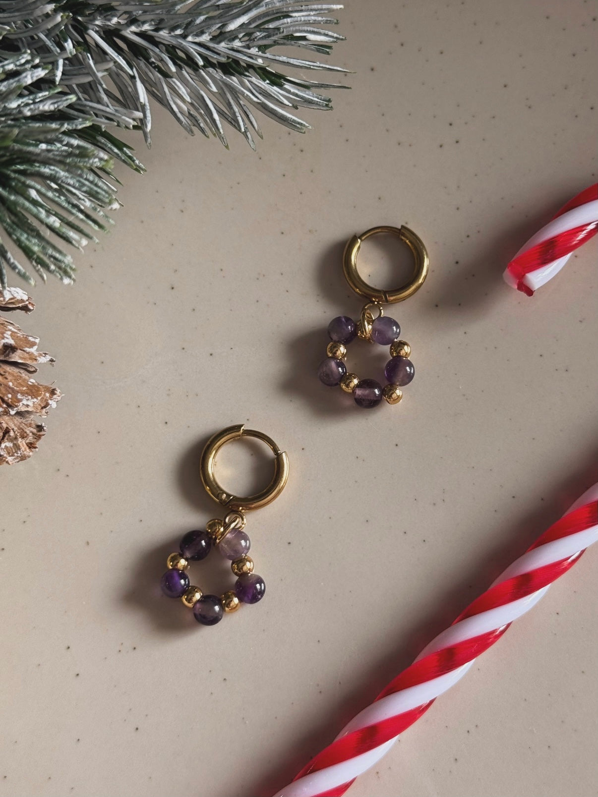 Los pendientes Et recordo son una pieza especial de la colección Entre Núvols, diseñada para los más pequeños. Elaborados con amatista natural, estos pendientes artesanales capturan la esencia de los recuerdos más dulces y la magia de las nubes.
