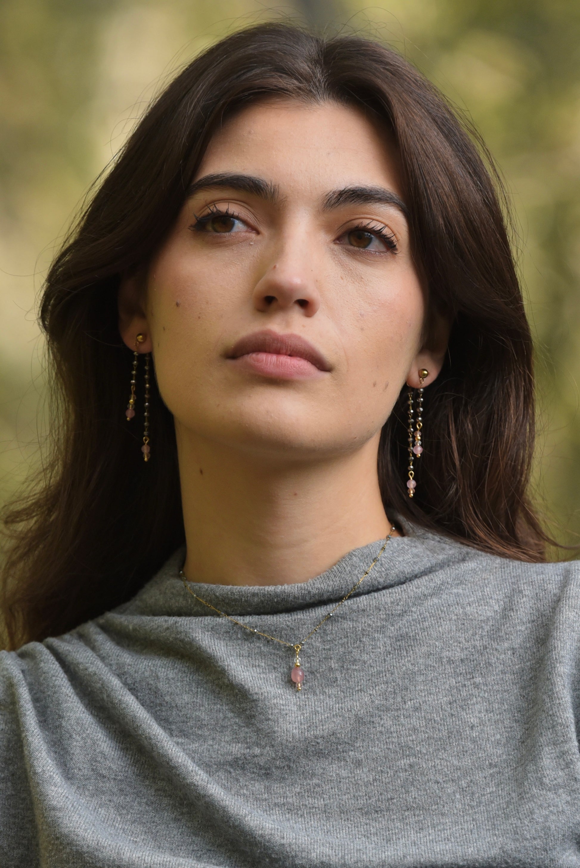Los Pendientes Etern de la colección Entre Núvols capturan la esencia de lo eterno con la delicada energía del cuarzo rosa. Elaborados artesanalmente, estos pendientes combinan la belleza natural del cuarzo rosa con un diseño minimalista y atemporal.