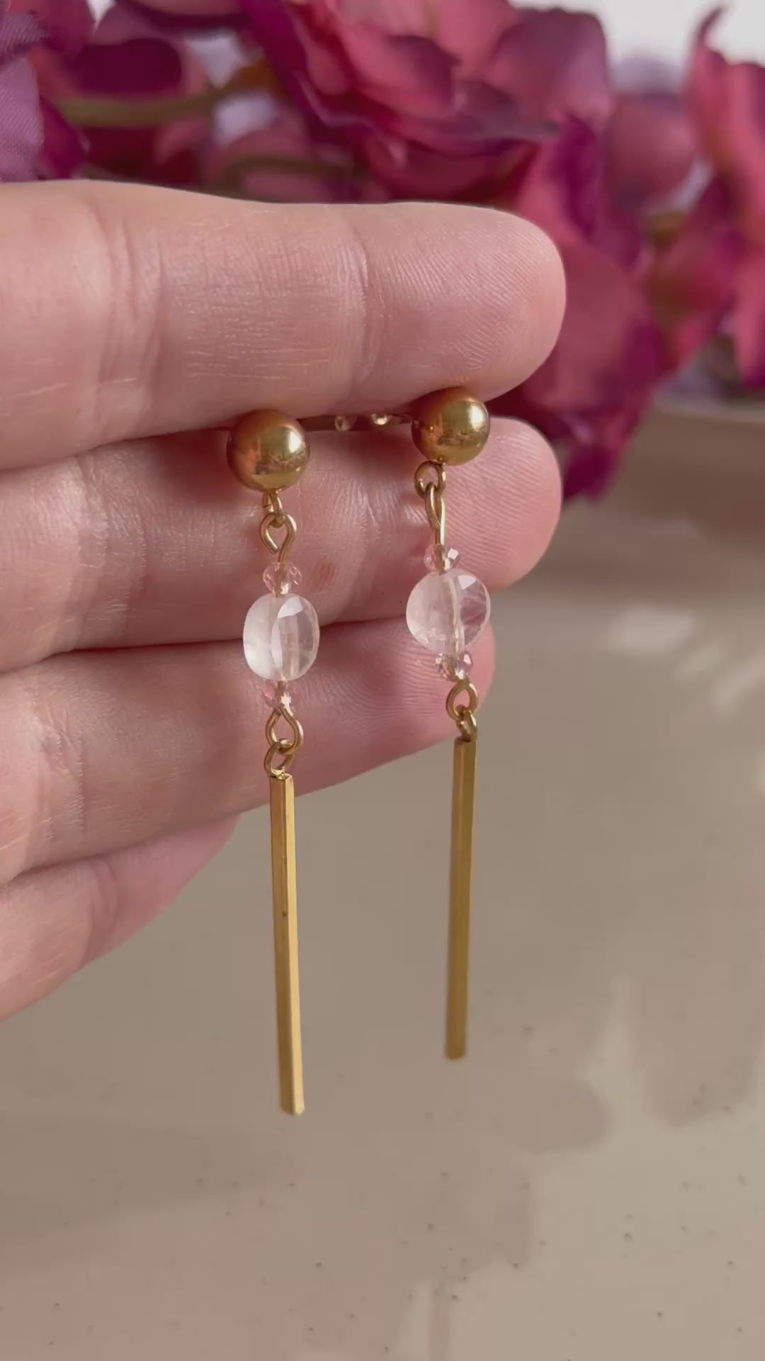 💖 Delicados pendientes Martinenca elaborados con cuarzo rosa natural y piezas de acero inoxidable, la combinación perfecta entre belleza mineral y durabilidad. ✨