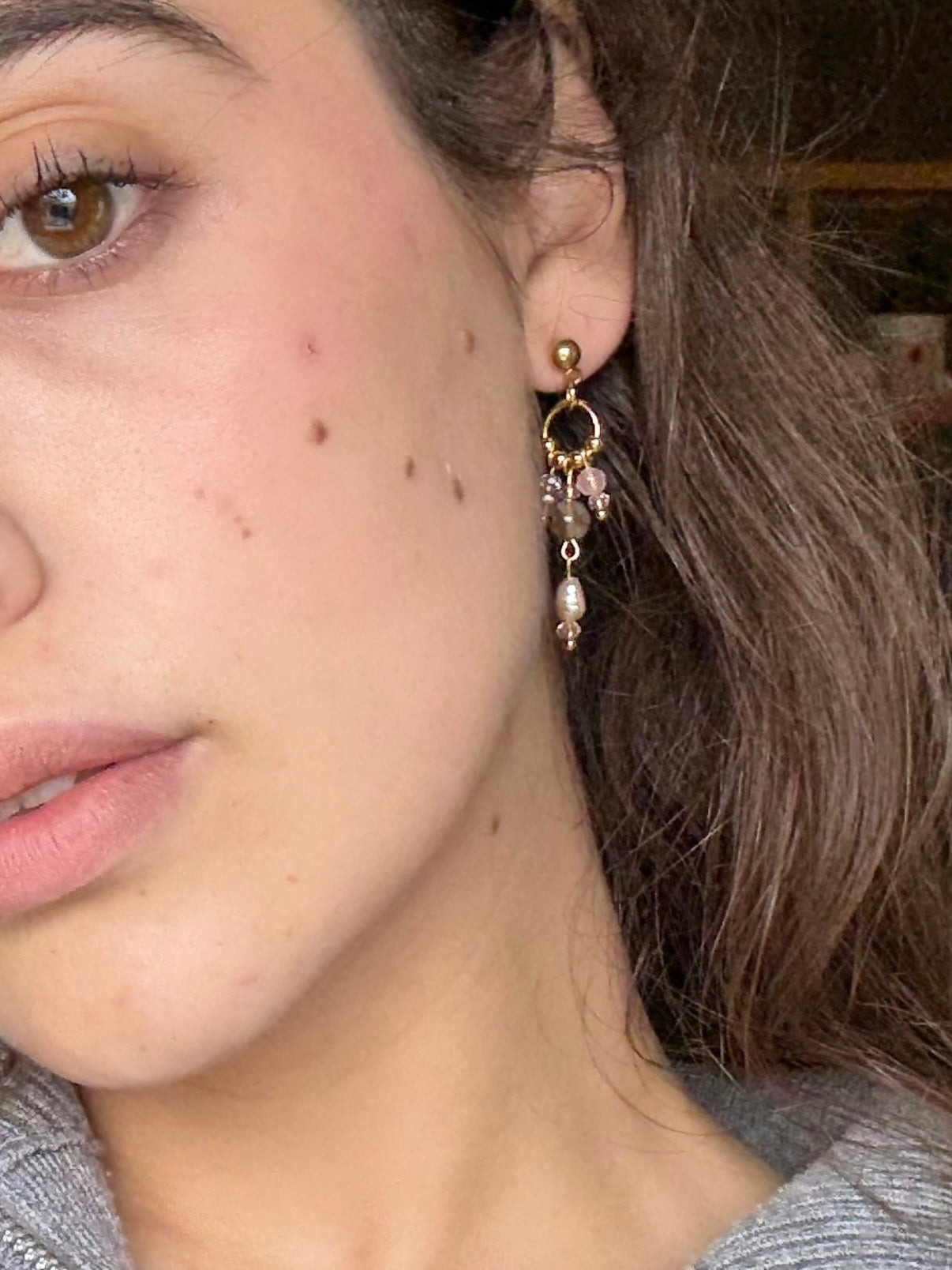 Cada piedra del sol, cuarzo rosa y ágata es diferente, lo que hace que cada par de pendientes Morfeo sea una pieza única con sus propias tonalidades y características naturales. Como los sueños, no hay dos iguales.