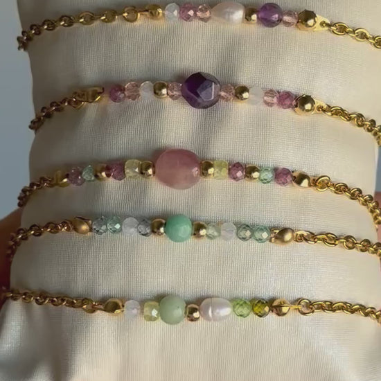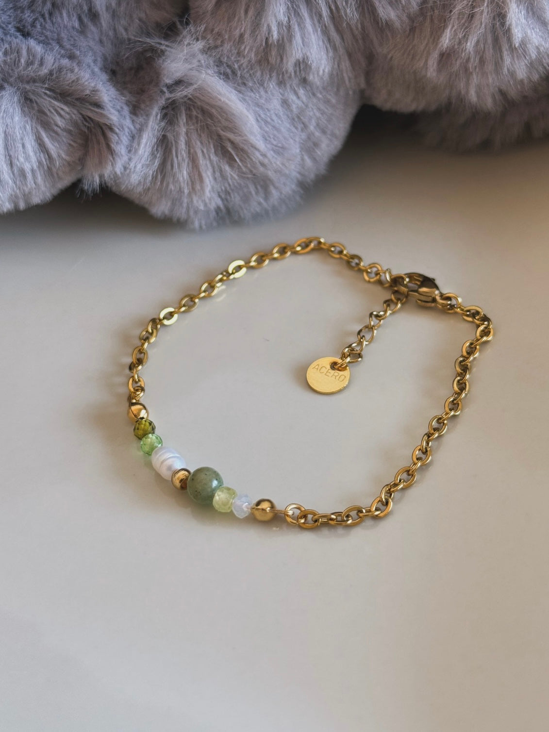 ✨ Descubre la elegancia natural con nuestra pulsera de amazonita, circonitas de alta calidad y perla natural cultivada.