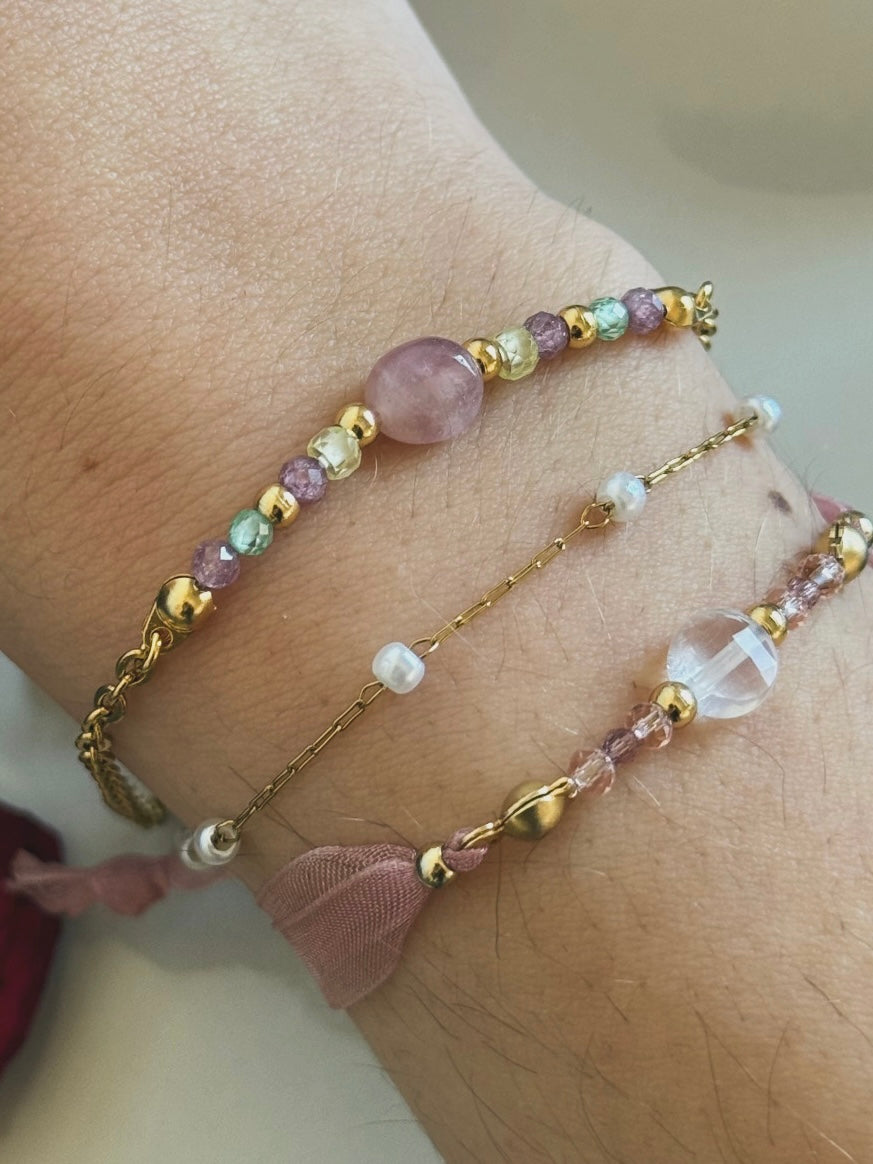 ✨ Descubre la elegancia natural con nuestra pulsera de cuarzo rosa y circonitas de alta calidad.