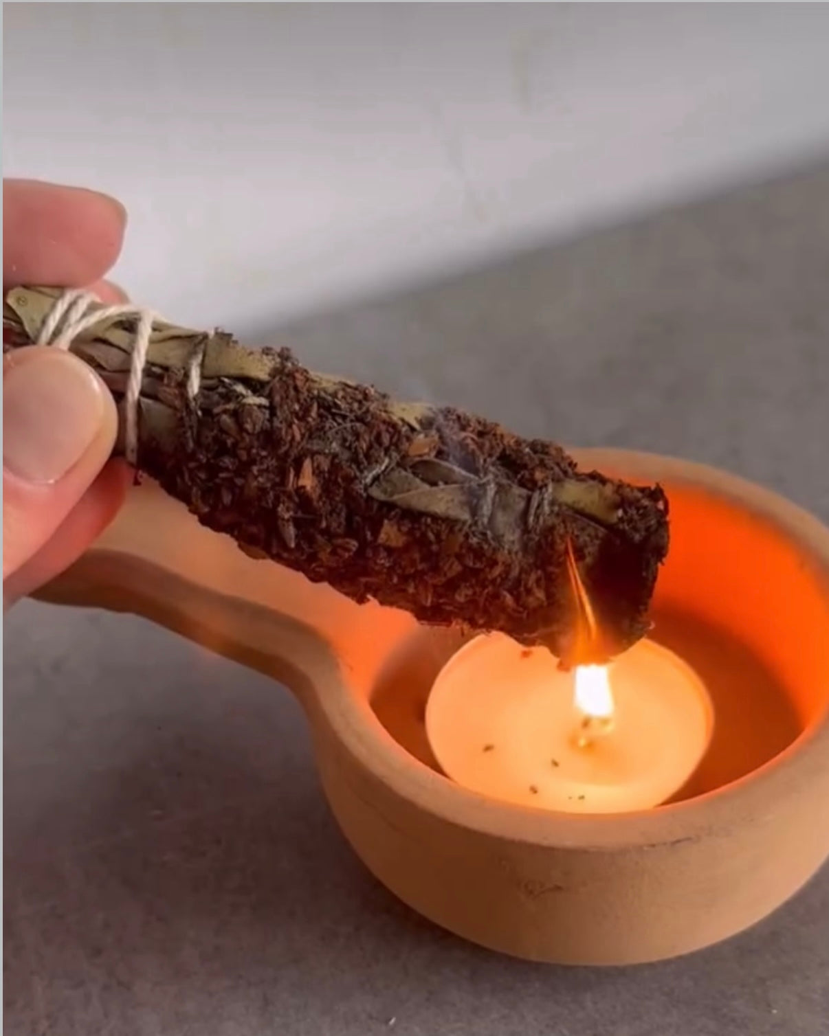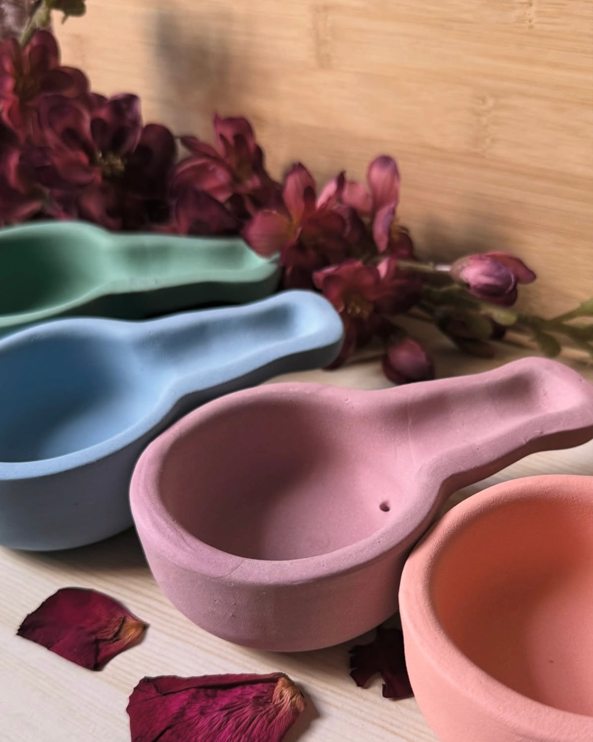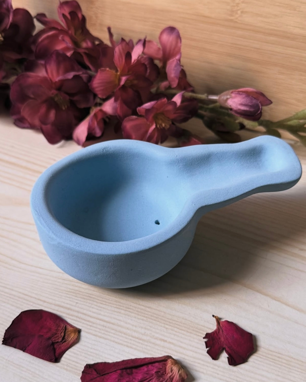 Un accesorio imprescindible para tus rituales de limpieza y armonía. Su diseño artesanal y sus tonos suaves lo convierten en una pieza única y decorativa para cualquier espacio.